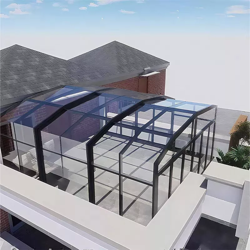 Solstuen vedtager en "udvendig aluminium + indvendig trækompositramme + isoleret hærdet glas" struktur. Aluminiumslegering ydersiden giver bærende styrke og vejrbestandighed, mens interiøret træ øger den visuelle varme og bokomfort.