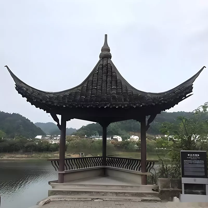 Understøtter ikke-standard størrelse tilpasning (3000-6000 mm), der dækker klassiske Huizhou former såsom fire-hjørne spir pavilloner, seks-hjørne pavilloner og otte-hjørne pavilloner. Træmuligheder omfatter borneol, gran, konserveringsmiddelfyr osv., og flisetyper kan tilpasses med små grønne fliser og cylindriske fliser. Installationen anvender betonbase til fastgørelse af søjler, splejsning på stedet for at undgå voldelig montering, der beskadiger tapper. Taget er lagt af professionelle fliselæggere i henhold til Huizhous håndværk for at sikre jævn dræning, og det hele bevarer regelmæssigheden og charmen fra Huizhous gamle arkitektur.