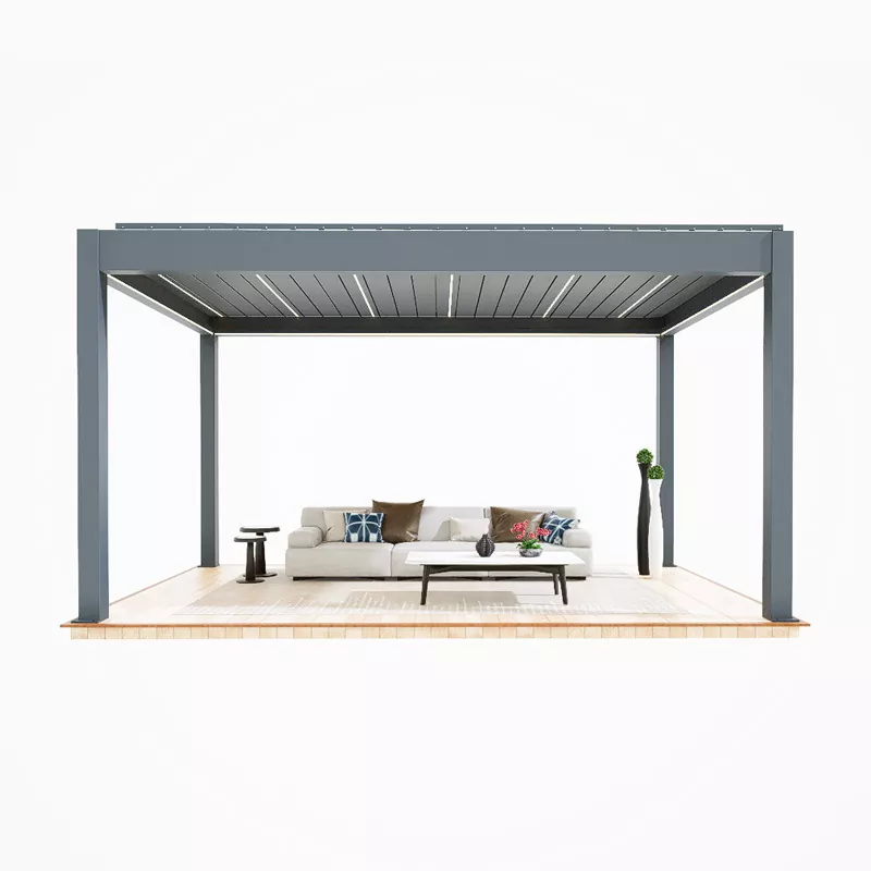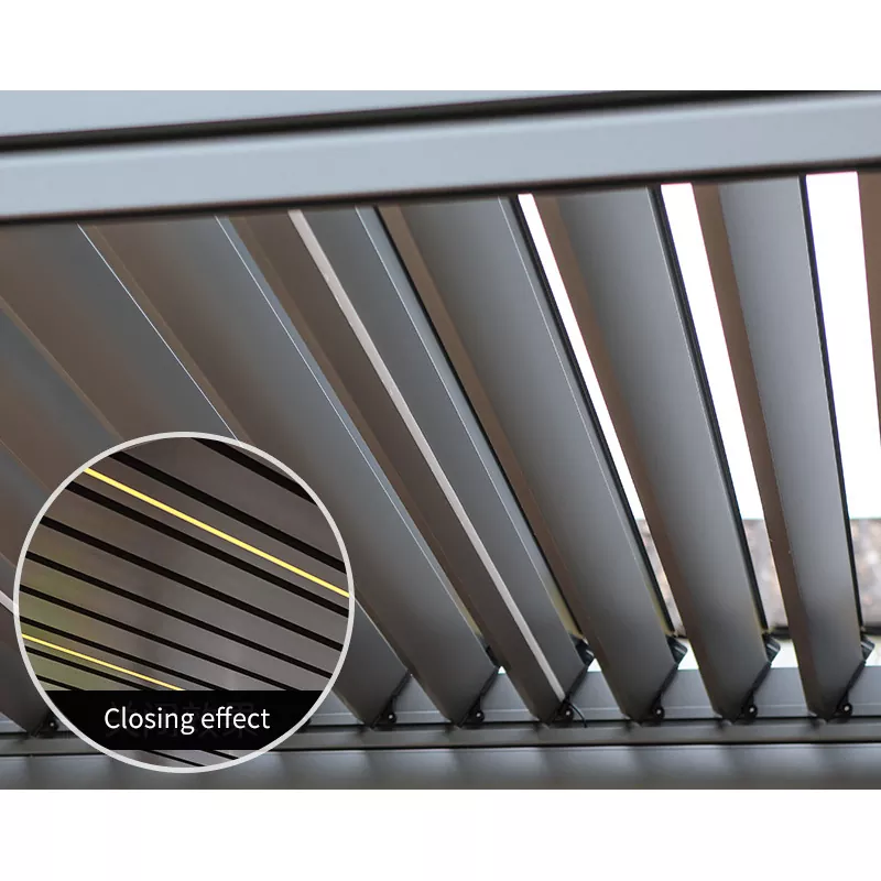 RProduction integrerer præcisionsbehandling, intelligent modulintegration og minimalistiske designkoncepter. De vigtigste aluminiumslegeringsprofiler behandles ved CNC-skæring og sømløs splejsning, med lige linjer og usynlige grænseflader, i overensstemmelse med minimalistisk æstetik. Intelligente komponenter er indlejret og installeret med controllere og sensorer gemt inde i søjler og bjælker, og alle ledninger er usynlige uden at ødelægge den overordnede enkelhed. Overfladebehandlingen vedtager mat fluorcarbonbelægning, med ensartet og delikat belægning og stærk vedhæftning, som kan modstå ultraviolette stråler og fugtkorrosion, hvilket forlænger udendørs levetid.