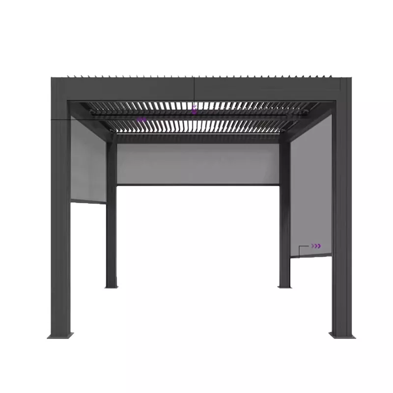 Courtyard Intelligent Pavillion (3000×3000 mm): 60×60 mm søjler, tag af hærdet glas + intelligent solsejl, velegnet til private gårdhaver;